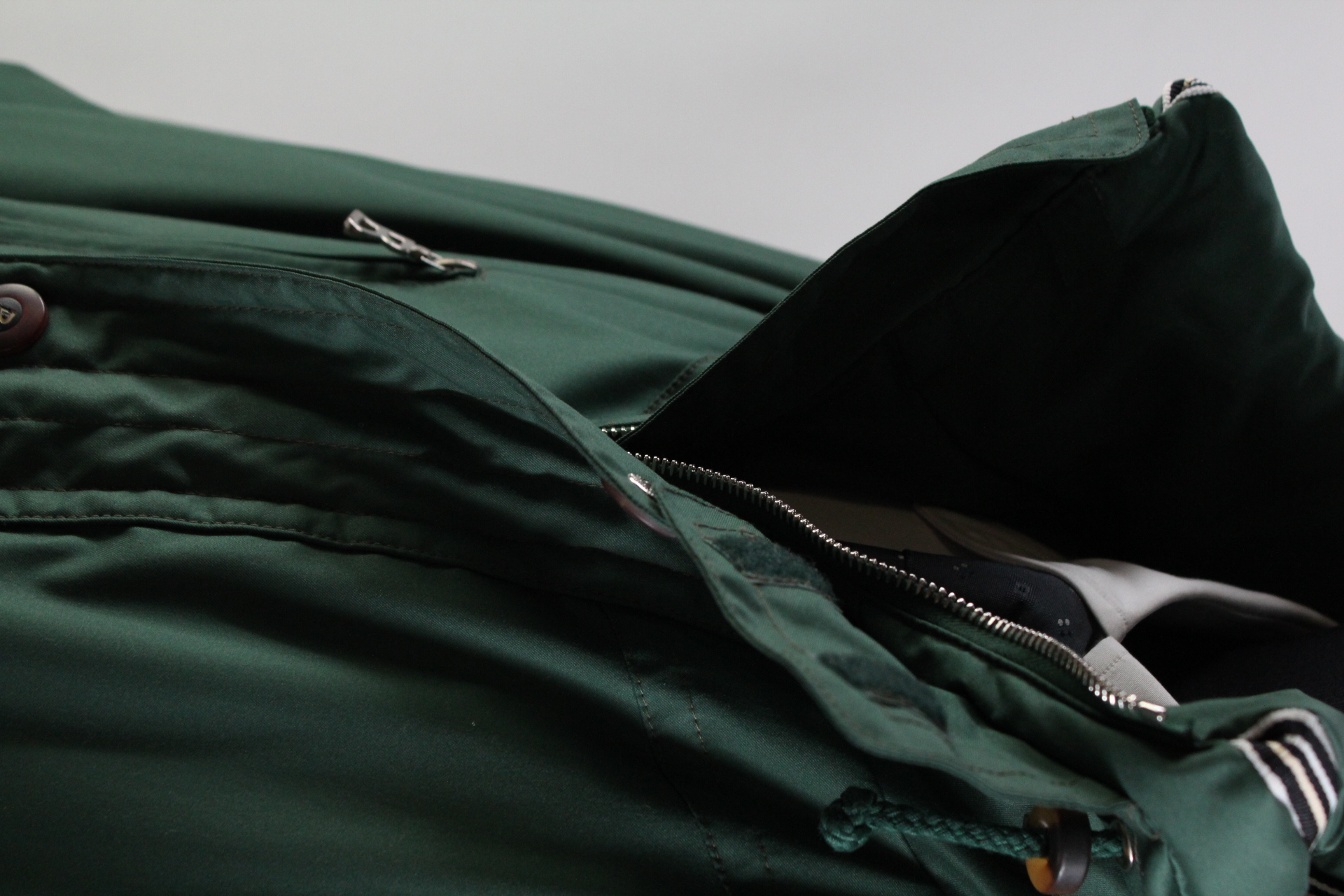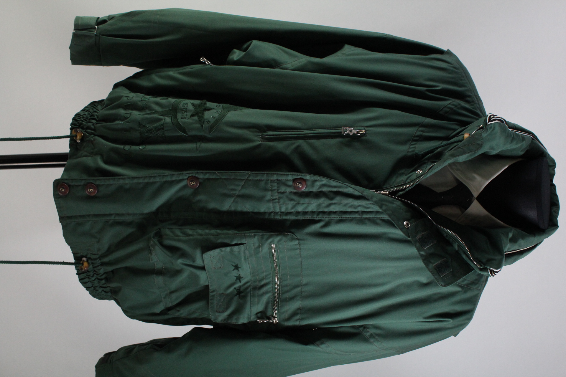 Ausstattung: 5 Druckknöpfe, Reißverschluss, Kapuze, Klettverschluss