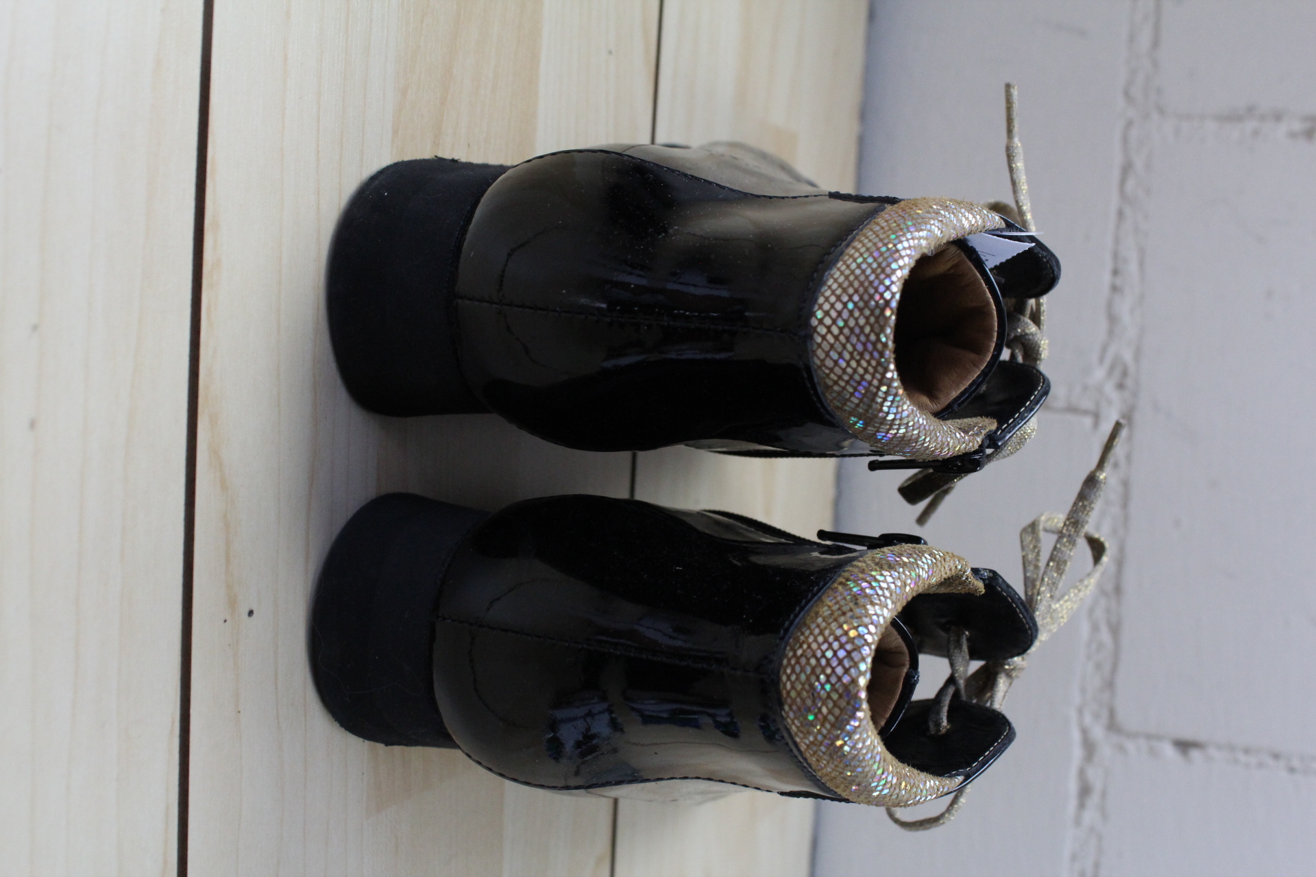 Halbstiefel Vabeene schwarz lack/ gold glitzer Gr.38 Top Zustand