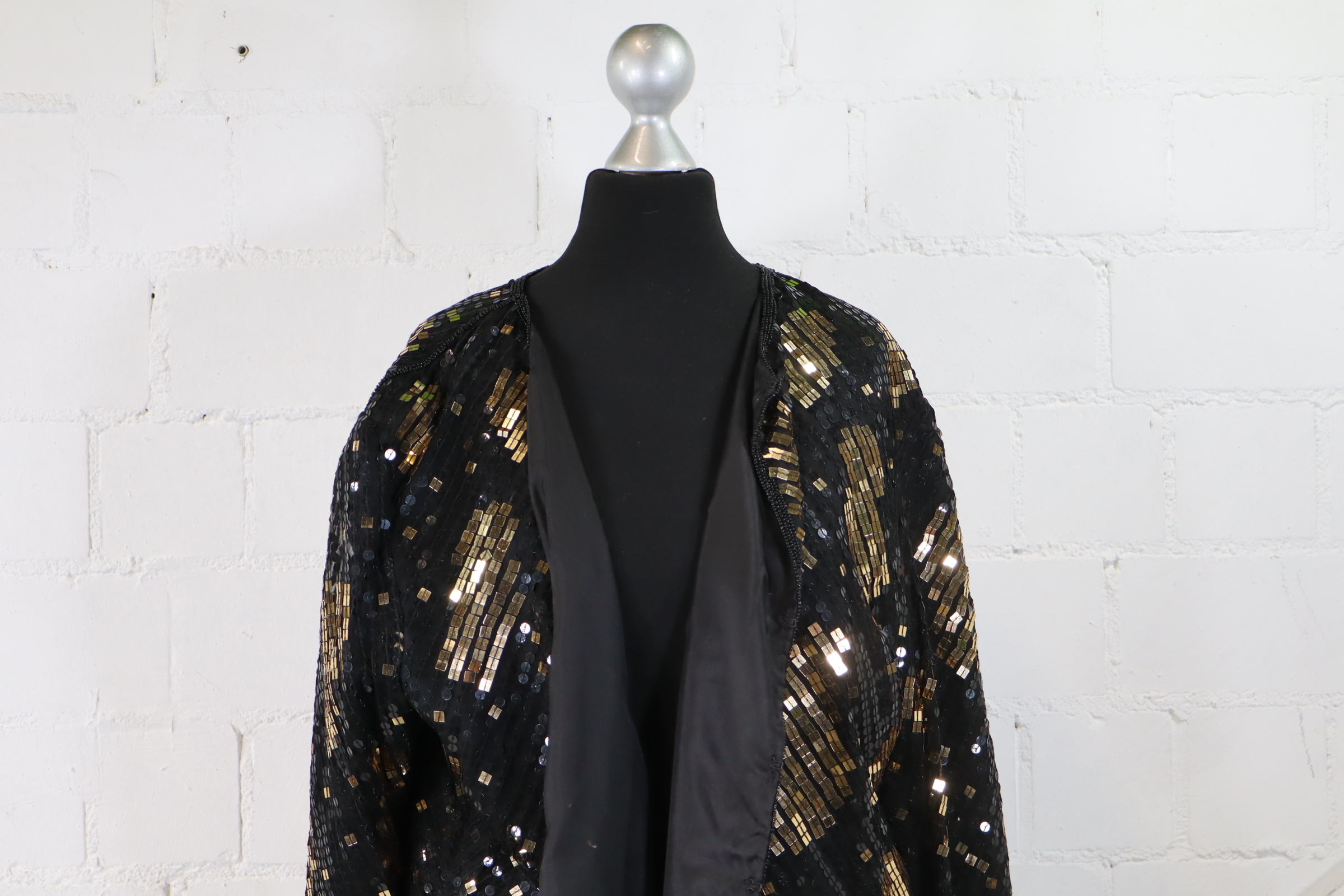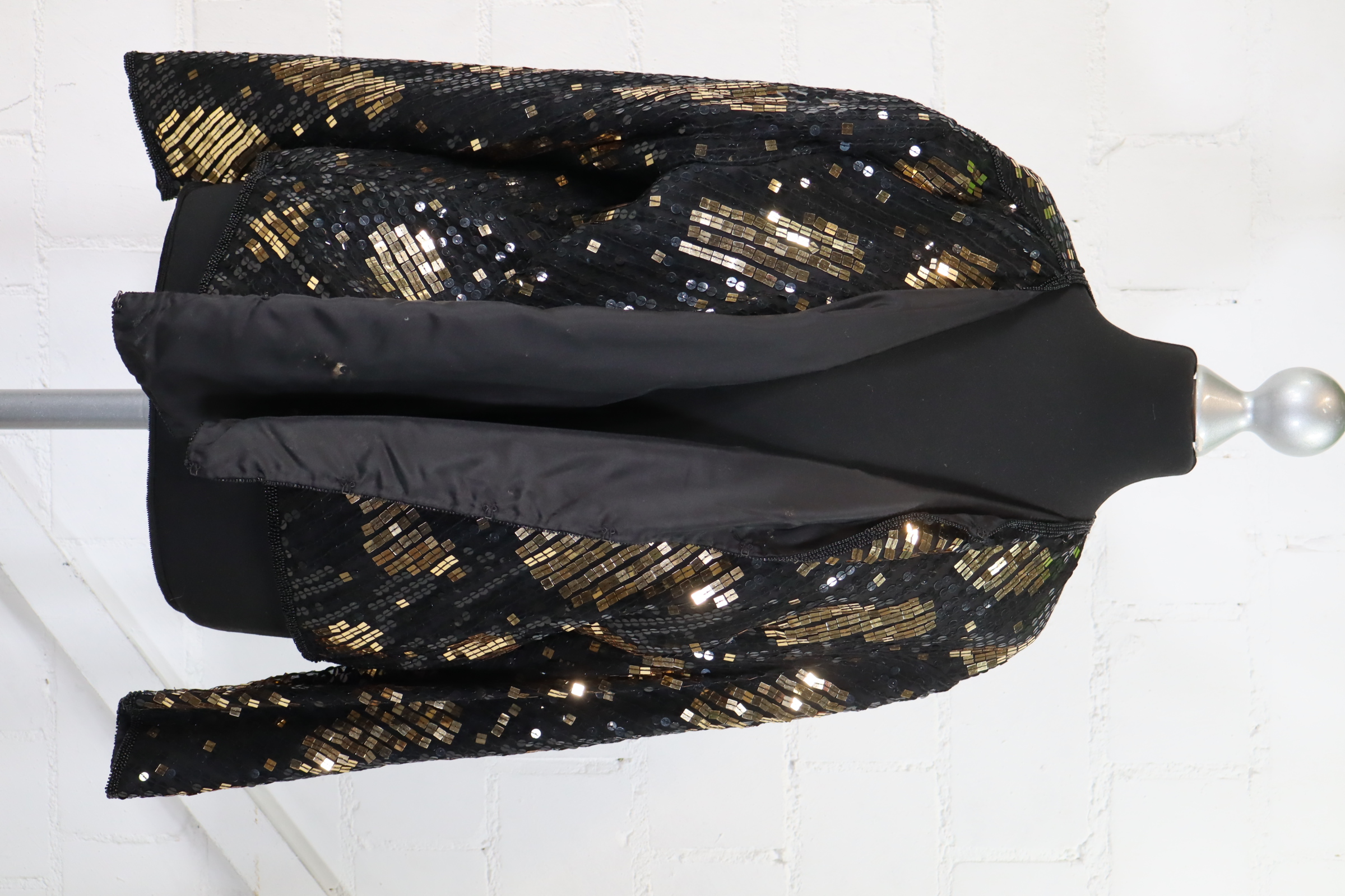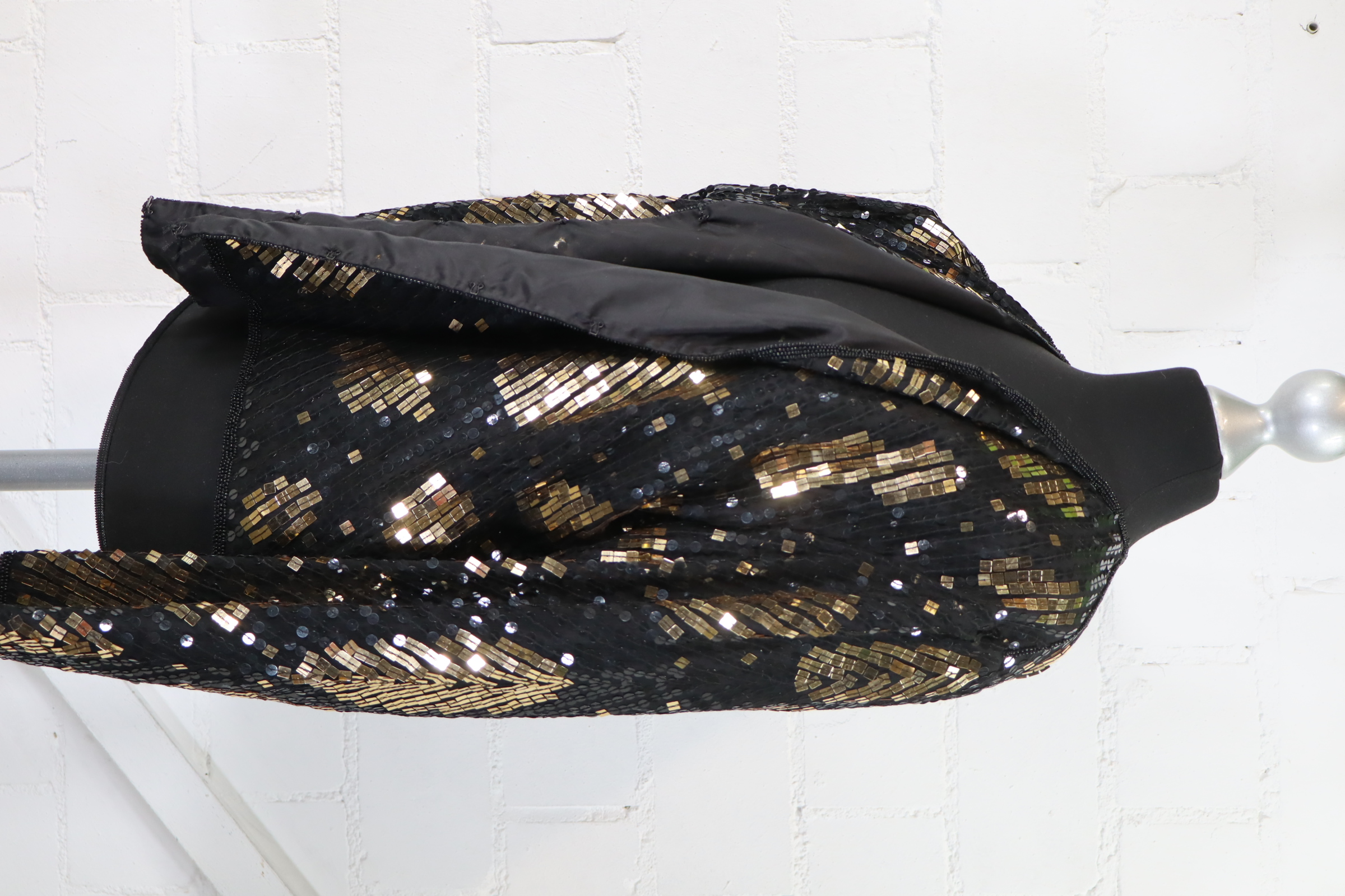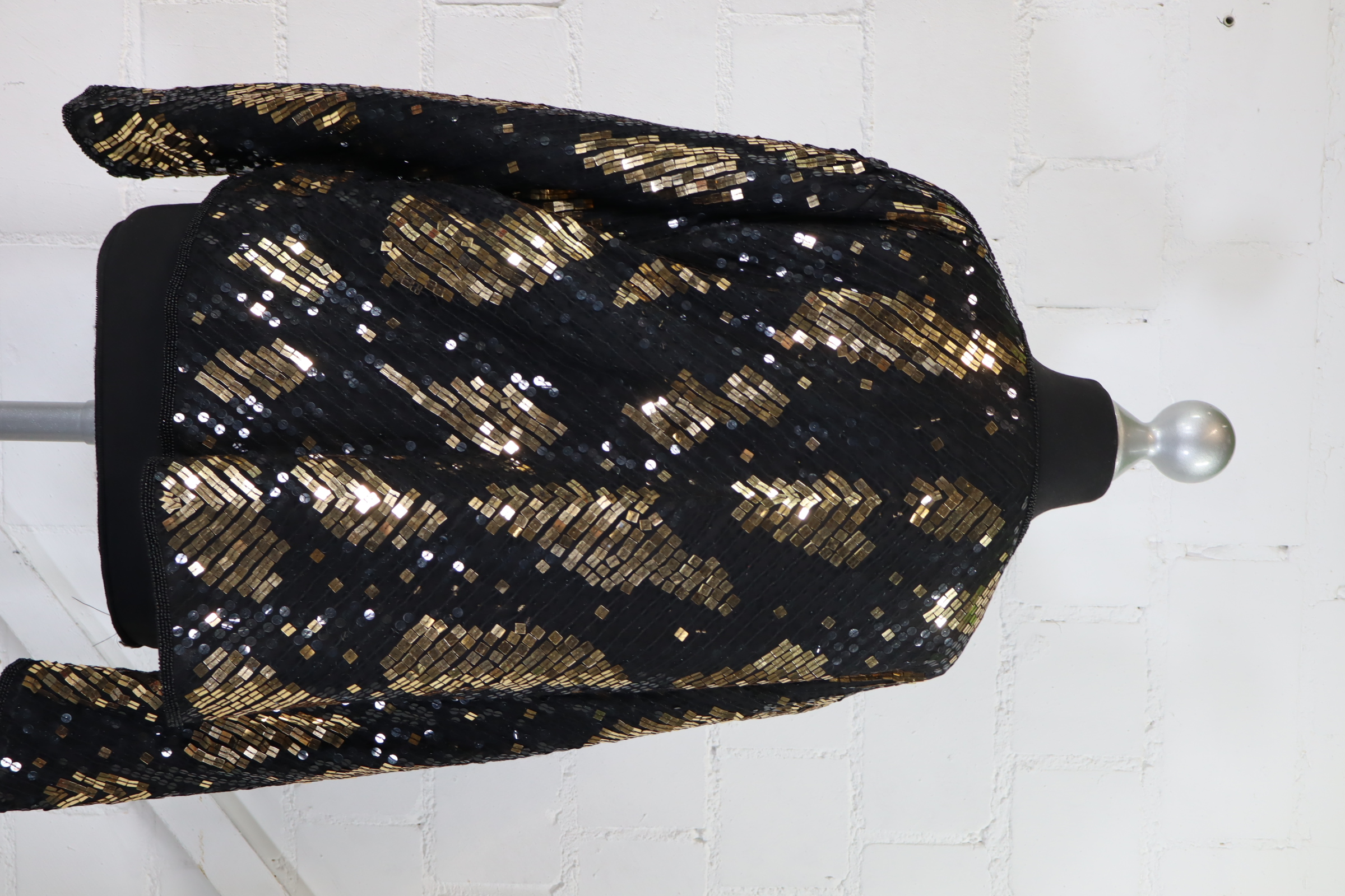 Höpfner Blazer Damen Gr. 44 Seide Pailletten Schwarz Gold Festlich Jacke Top
